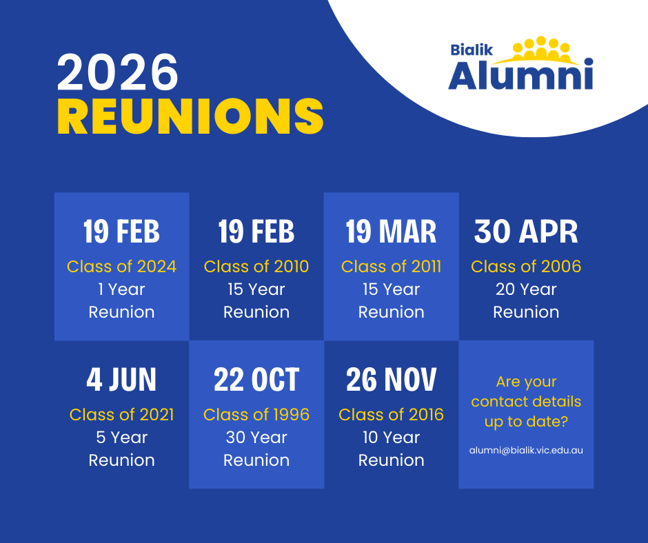 2026 is shaping up to be a big year at Bialik, with seven reunions already locked in. With the introduction of a new 15-year reunion.