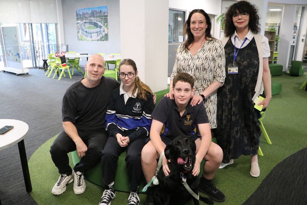 We had the pleasure of welcoming Black Labrador Shadow and her wonderful family to our school. Lynne and David Wilson, along with their children Ella, Ava, and Ben, and their grandmother Daphne Gaddie, joined us for a special visit. Shadow holds a special place in our hearts as the first dog to join our Dogs for Life program ten years ago in 2014.
