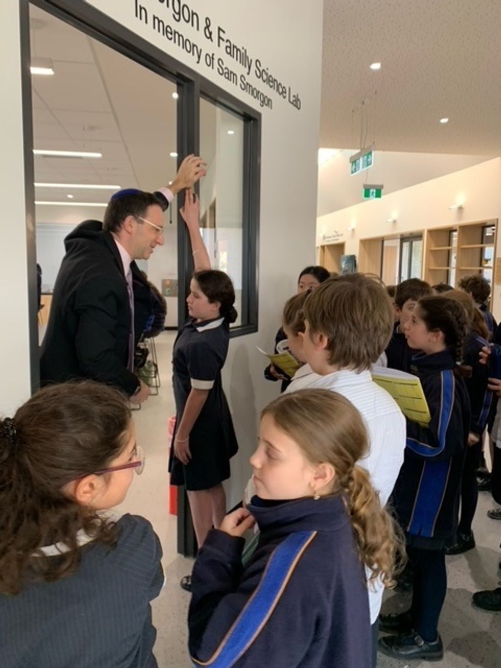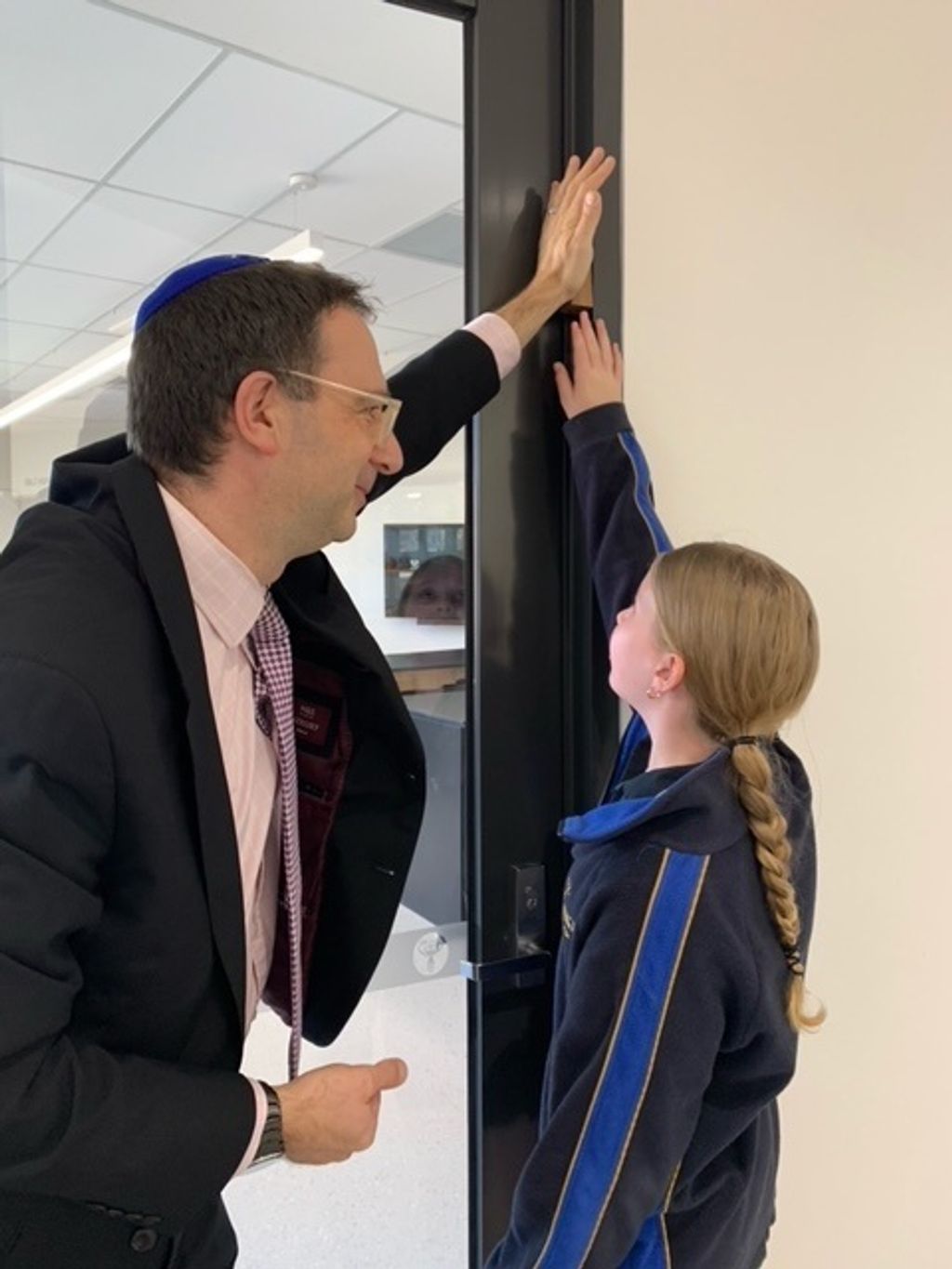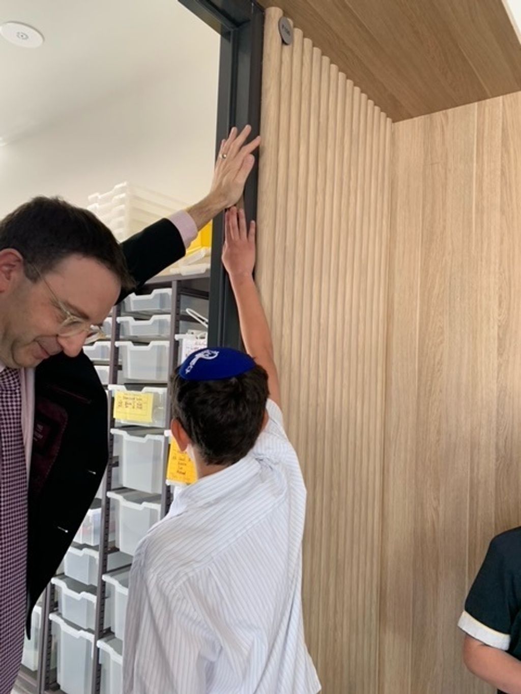 Principal Jeremy assisted the students to attach the mezuzahs to the door posts and recite the ceremonial prayer.